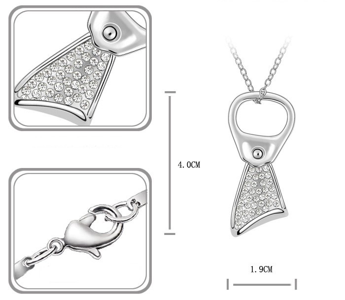Set molto elegante e femminile composto da una catenina con pendente e un paio di orecchini a forma di linguetta di lattina con cristalli austriaci, realizzato in metallo di colore argento.