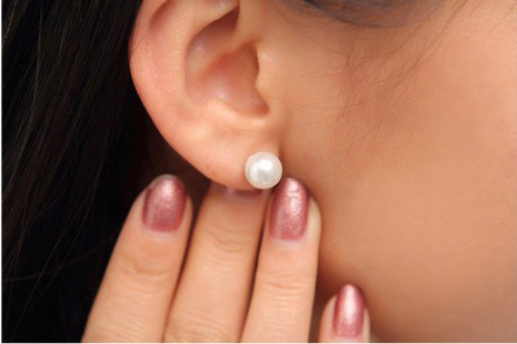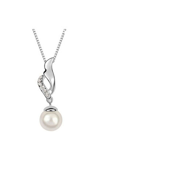 Set molto elegante e femminile composto da una catenina con pendente e un paio di orecchini con perle di imitazione e piccoli cristalli austriaci, realizzato in metallo di colore argento.