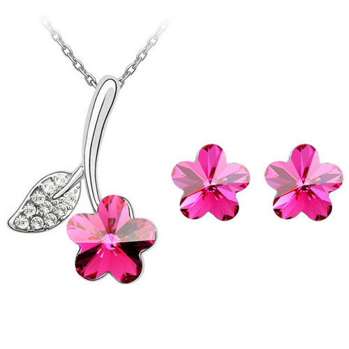 SET COLLANA + ORECCHINI CON CRISTALLI AUSTRIACI A FORMA DI FIORE