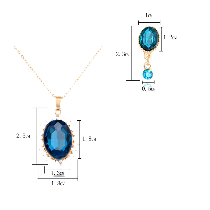 Set molto elegante e femminile composto da una catenina con pendente e un paio di orecchini a forma ovale con cristalli austriaci, realizzato in metallo di colore oro.