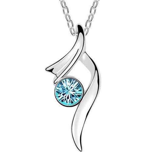 Set molto elegante e femminile composto da una catenina con pendente e un paio di orecchini con cristalli austriaci, realizzato in metallo di colore argento.